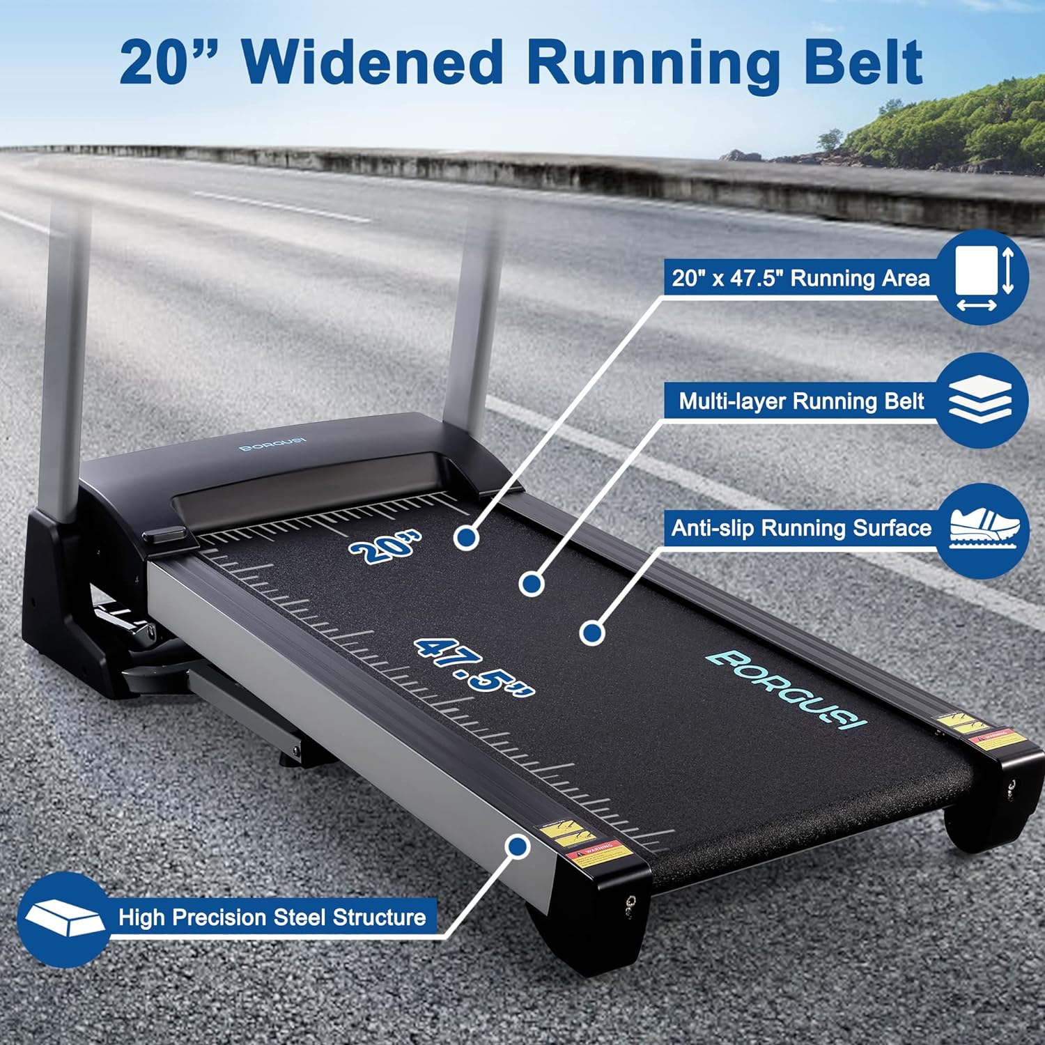 BORGUSI 15% Auto Incline Treadmill with Bluetooth Speaker, 20" Wide 3.5HP Folding Electric Treadmill with LCD Display Easy Assembly Running Walking Exercise Machine for Home Use, 350 LBS Capacity ist auf Lager und wird versandt, sobald es wieder verfügbar ist