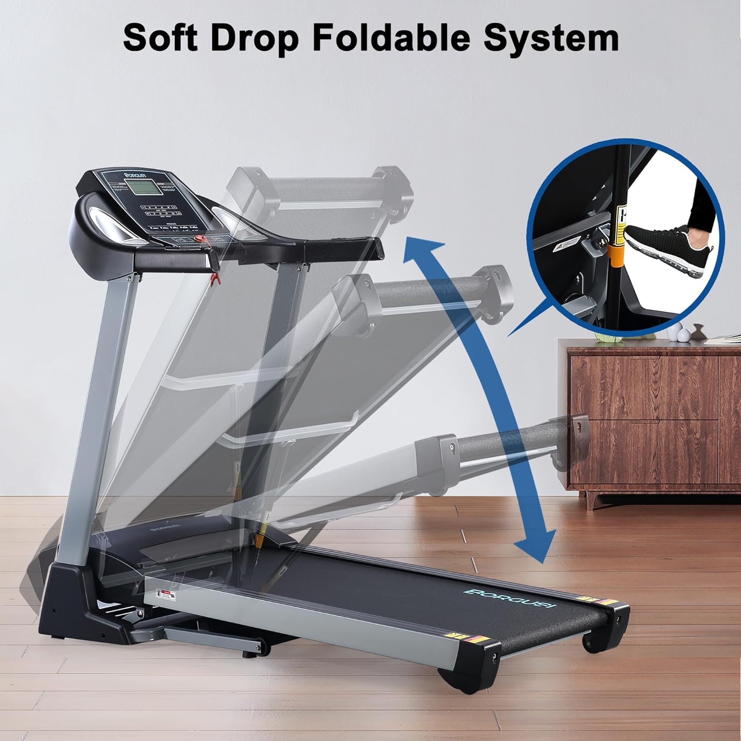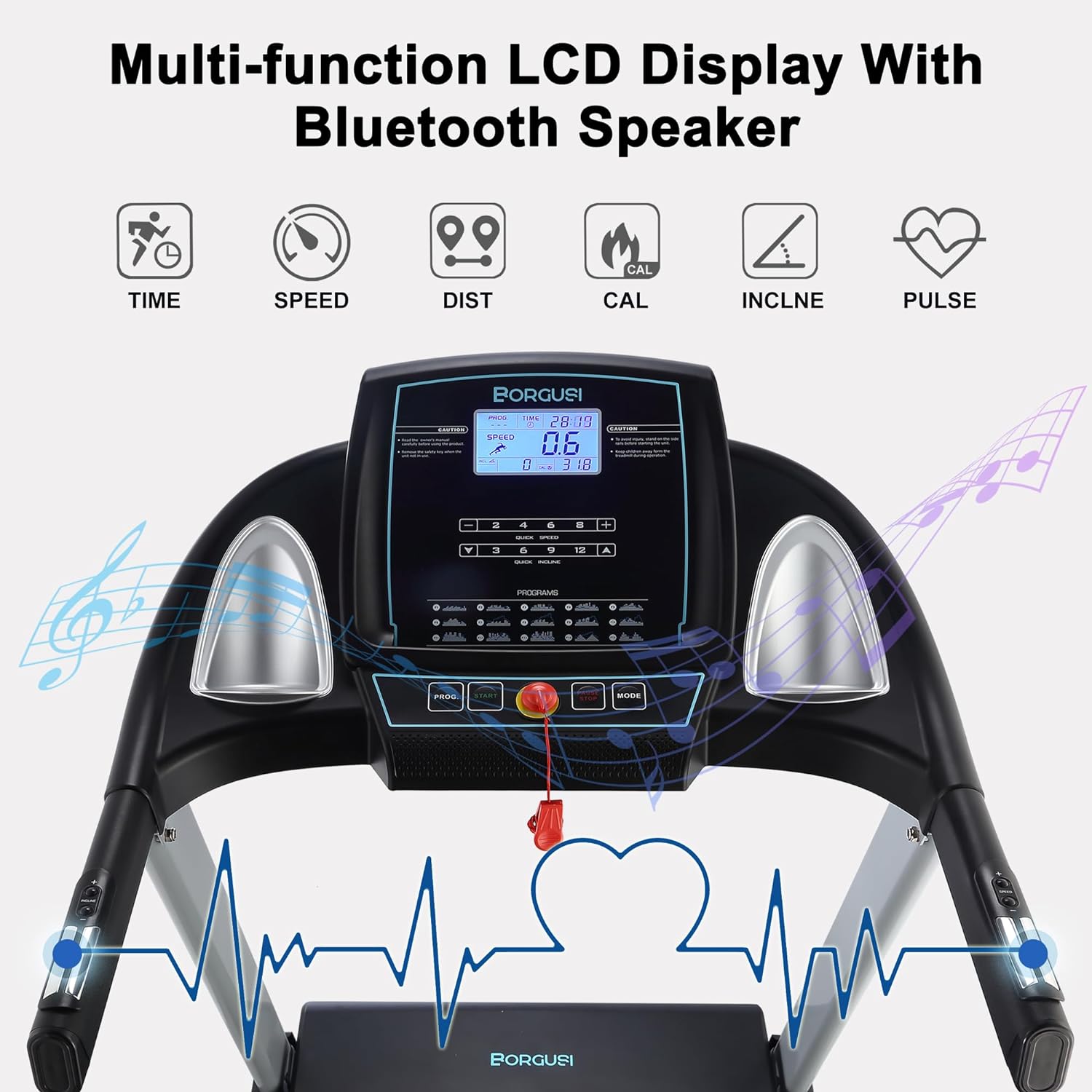 BORGUSI Auto Incline Treadmill, 300/350LBS Capacity, 17.5"/20" Wide Electric Folding Treadmill Max 8.5/10 MPH Speed, Running Machine with Bluetooth Speaker